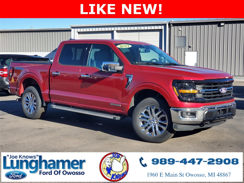 Rapid Red Metallic Tinted Clearcoat 2024 Ford F-150 XLT 4WD 10-Speed Automatic 3.5L PowerBoost Full-Hybrid V6 2024 Ford F-150, *4X4*, *ONE OWNER*, *NAVIGATION*, *HEATED SEATS*, *FULLY DETAILED*, *REMOTE START*, *BACK UP CAMERA*, MOBILE OFFICE PKG!, BED UTILITY PKG!, F-150 XLT, 4D SuperCrew, 3.5L PowerBoost Full-Hybrid V6, 10-Speed Automatic, 4WD, Rapid Red Metallic Tinted Clearcoat, Black W/Medium Dark Slate Cloth, 4 Pickup Box Tie-Down Plates, 400W Cab & Bed Outlets, 6 Speakers, Adaptive Cruise Control w/Stop & Go, Air Conditioning, Auto High-beam Headlights, Automatic temperature control, Bed Utility Package, Cloth 40/Console/40 Front Seats, Console Worksurface, Electronic Locking w/3.73 Axle Ratio, Equipment Group 302A Mid, Ford BlueCruise Equipped (90-Day Trial), Front dual zone A/C, Front fog lights, Fully automatic headlights, Heated Front Seats, Intelligent Access w/Push Button Start, LED Box Lighting, Mobile Office Package, Navigation system: Connected Navigation, Partitioned Lockable Rear Storage, Power driver seat, Power Glass Heated Sideview Mirrors, Power windows, Power-Sliding Rear Window, Pro Power Onboard - 7.2KW, Radio data system, Radio: AM/FM SiriusXM w/360L, Rear window defroster, Remote Start System w/Remote Tailgate Release, SYNC 4 w/Enhanced Voice Recognition, Tailgate Step w/Tailgate Work Surface, Tilt steering wheel, Tough Bed Spray-In Bedliner, Wheels: 20'' Chrome-Like PVD.