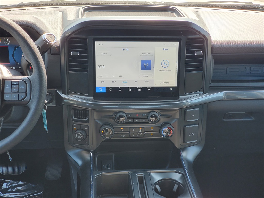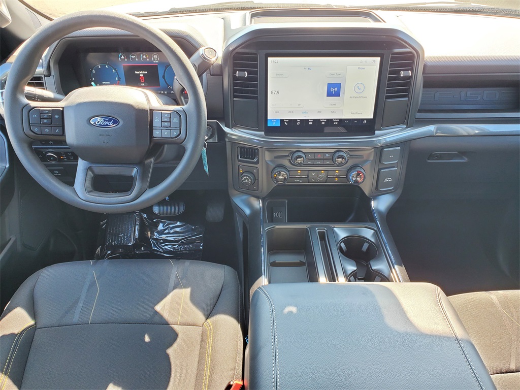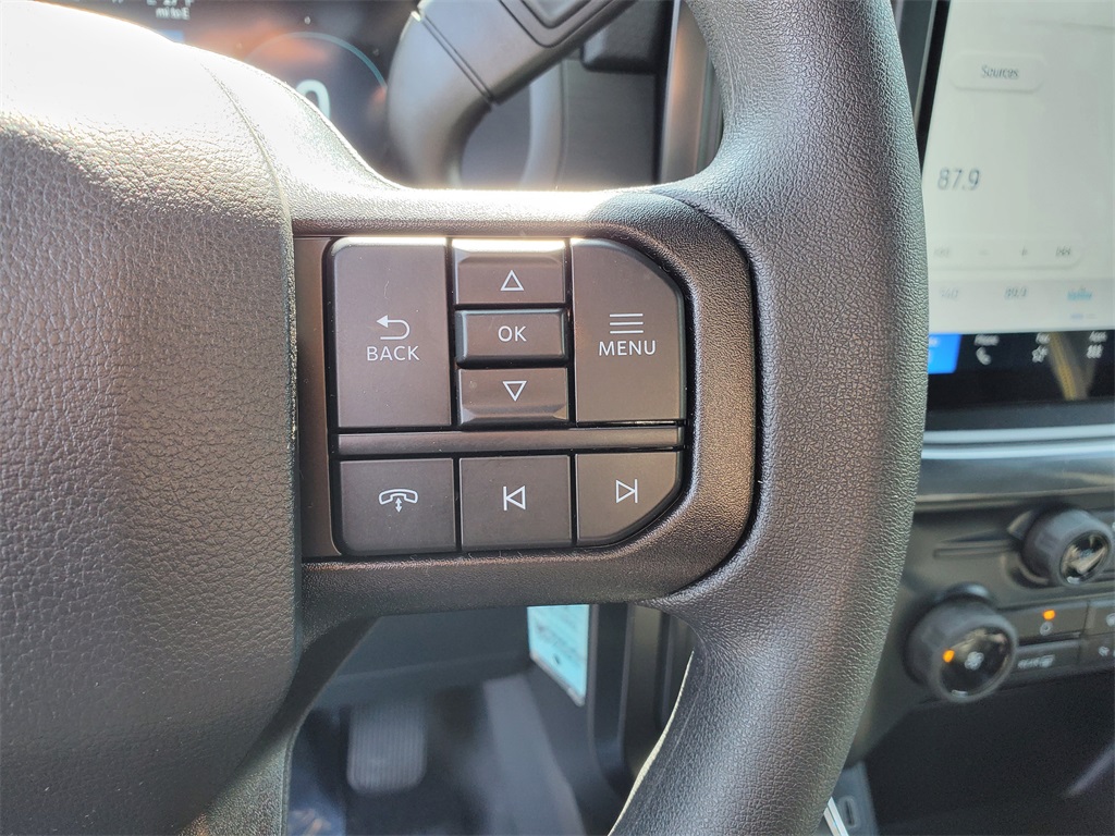 This Vehicles features Equipment Group 200A Mid (LED Fog Lamps w/LED Cornering Lamp and Wheels: 20'' Dark Gray w/Machined Aluminum), GVWR: 6,650 lbs Payload Package, Mobile Office Package (400W Cab & Bed Outlets and Console Worksurface), 4WD, 3.55 Axle Ratio, 4-Wheel Disc Brakes, 6 Speakers, ABS brakes, Air Conditioning, Alloy wheels, AM/FM radio: SiriusXM with 360L, Auto High-beam Headlights, Brake assist, Bumpers: body-color, Compass, Delay-off headlights, Driver door bin, Dual front impact airbags, Dual front side impact airbags, Electronic Stability Control, Emergency communication system: SYNC 4 911 Assist, Front anti-roll bar, Front Bucket Seats, Front Center Armrest, Front reading lights, Front wheel independent suspension, Fully automatic headlights, Heated door mirrors, Illuminated entry, Low tire pressure warning, Occupant sensing airbag, Outside temperature display, Overhead airbag, Overhead console, Panic alarm, Passenger door bin, Passenger vanity mirror, Power door mirrors, Power steering, Power windows, Radio data system, Radio: AM/FM Stereo w/SiriusXM 360L, Rear Parking Sensors, Rear step bumper, Rear window defroster, Remote keyless entry, Security system, Speed control, Split folding rear seat, Steering wheel mounted audio controls, SYNC 4 w/Enhanced Voice Recognition, Tachometer, Telescoping steering wheel, Tilt steering wheel, Traction control, Trip computer, Variably intermittent wipers, Voltmeter, and Wheels: 18'' Gloss Black.