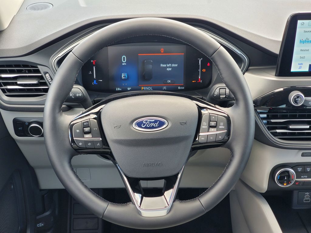 This Vehicles features AWD, 3.81 Axle Ratio, 4-Wheel Disc Brakes, 6 Speakers, ABS brakes, Air Conditioning, Alloy wheels, AM/FM radio: SiriusXM, AM/FM Stereo, Auto High-beam Headlights, Automatic temperature control, Driver door bin, Driver vanity mirror, Dual front impact airbags, Dual front side impact airbags, Electronic Stability Control, Emergency communication system: SYNC 4 911 Assist, FordPass Connect, Four wheel independent suspension, Front anti-roll bar, Front Bucket Seats, Front Center Armrest, Front dual zone A/C, Front reading lights, Fully automatic headlights, Illuminated entry, Knee airbag, Low tire pressure warning, Occupant sensing airbag, Outside temperature display, Overhead airbag, Overhead console, Panic alarm, Passenger door bin, Passenger vanity mirror, Power door mirrors, Power driver seat, Power steering, Power windows, Radio data system, Rear anti-roll bar, Rear reading lights, Rear seat center armrest, Rear window defroster, Rear window wiper, Remote keyless entry, Speed control, Speed-sensing steering, Speed-Sensitive Wipers, Split folding rear seat, Spoiler, Sport steering wheel, Steering wheel mounted audio controls, SYNC 4, Tachometer, Telescoping steering wheel, Tilt steering wheel, Traction control, Trip computer, Variably intermittent wipers, Cloth Front Bucket Seats, and Wheels:17'' SHDW SLVR-PNTD ALUM WHEEL. 26/32 City/Highway MPG