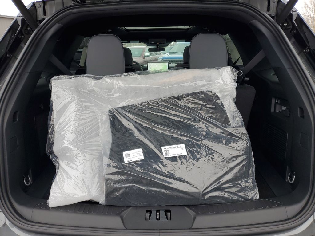 This Vehicles features Equipment Group 300A Standard Package (Heated Unique Cloth Captain's Chairs, Radio: B&O Sound System by Bang and Olufsen, and Wheels: 20'' Ebony-Painted Machined Aluminum), 4WD, 10 Speakers, 2nd Row Captain's Chairs w/E-Z Entry and Armrest, 3rd row seats: bench, 4-Wheel Disc Brakes, ABS brakes, Air Conditioning, Alloy wheels, AM/FM radio: SiriusXM with 360L, Apple CarPlay/Android Auto, Auto High-beam Headlights, Automatic temperature control, Black Painted Roof, BlueCruise (equipment + 1-Year + 90-Day Plan), BlueCruise Hardware, Brake assist, Bumpers: body-color, Compass, Delay-off headlights, Driver door bin, Driver vanity mirror, Dual front impact airbags, Dual front side impact airbags, Electronic Stability Control, Emergency communication system: 911 Assist, Exterior Parking Camera Rear, Four wheel independent suspension, Front and 2nd Rows Floor Liners with Carper Floor Mats, Front anti-roll bar, Front Bucket Seats, Front Center Armrest, Front dual zone A/C, Front fog lights, Front reading lights, Fully automatic headlights, Garage door transmitter, Heated door mirrors, Heated front seats, Heated steering wheel, Illuminated entry, Knee airbag, Leather steering wheel, Low tire pressure warning, Navigation System, Occupant sensing airbag, Outside temperature display, Overhead airbag, Overhead console, Panic alarm, Panoramic Fixed Glass Roof with Power Shade, Passenger door bin, Passenger vanity mirror, Power door mirrors, Power driver seat, Power Liftgate, Power passenger seat, Power steering, Power windows, Rear air conditioning, Rear anti-roll bar, Rear reading lights, Rear window defroster, Rear window wiper, Remote keyless entry, Security system, Speed control, Speed-sensing steering, Speed-Sensitive Wipers, Split folding rear seat, Spoiler, Steering wheel mounted audio controls, Tachometer, Telescoping steering wheel, Tilt steering wheel, Traction control, Trip computer, and Variably intermittent wipers. 20/27 City/Highway MPG