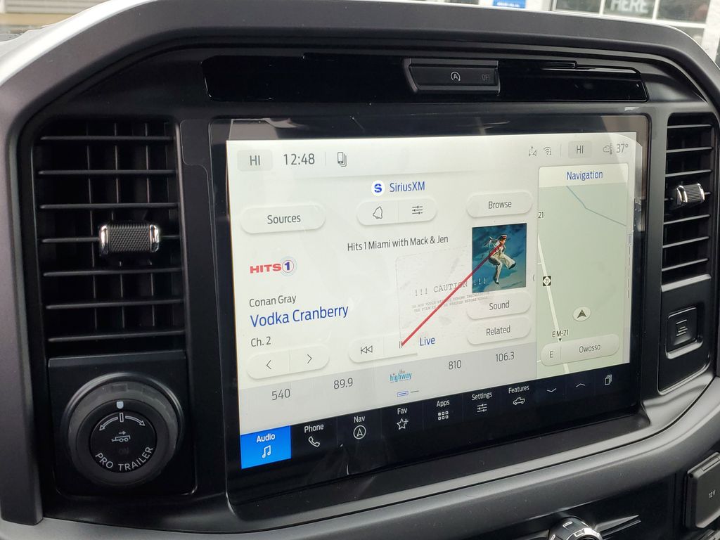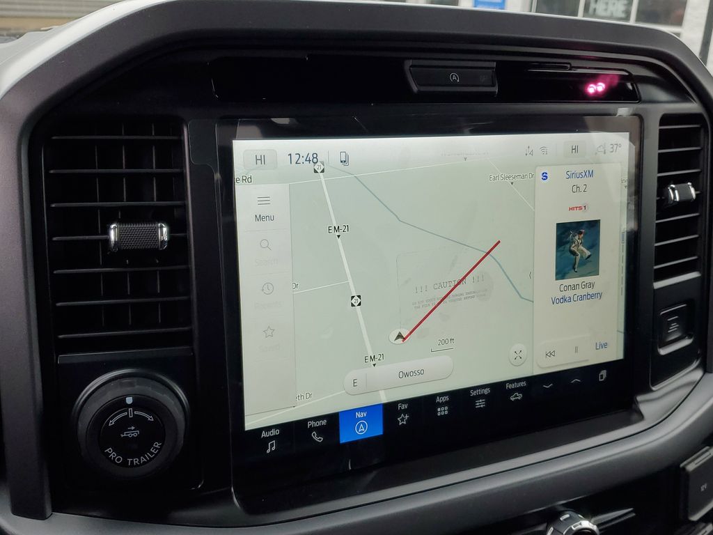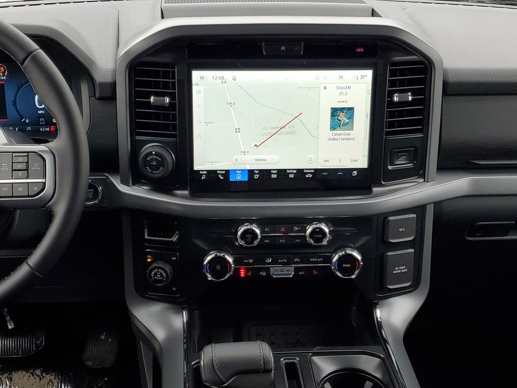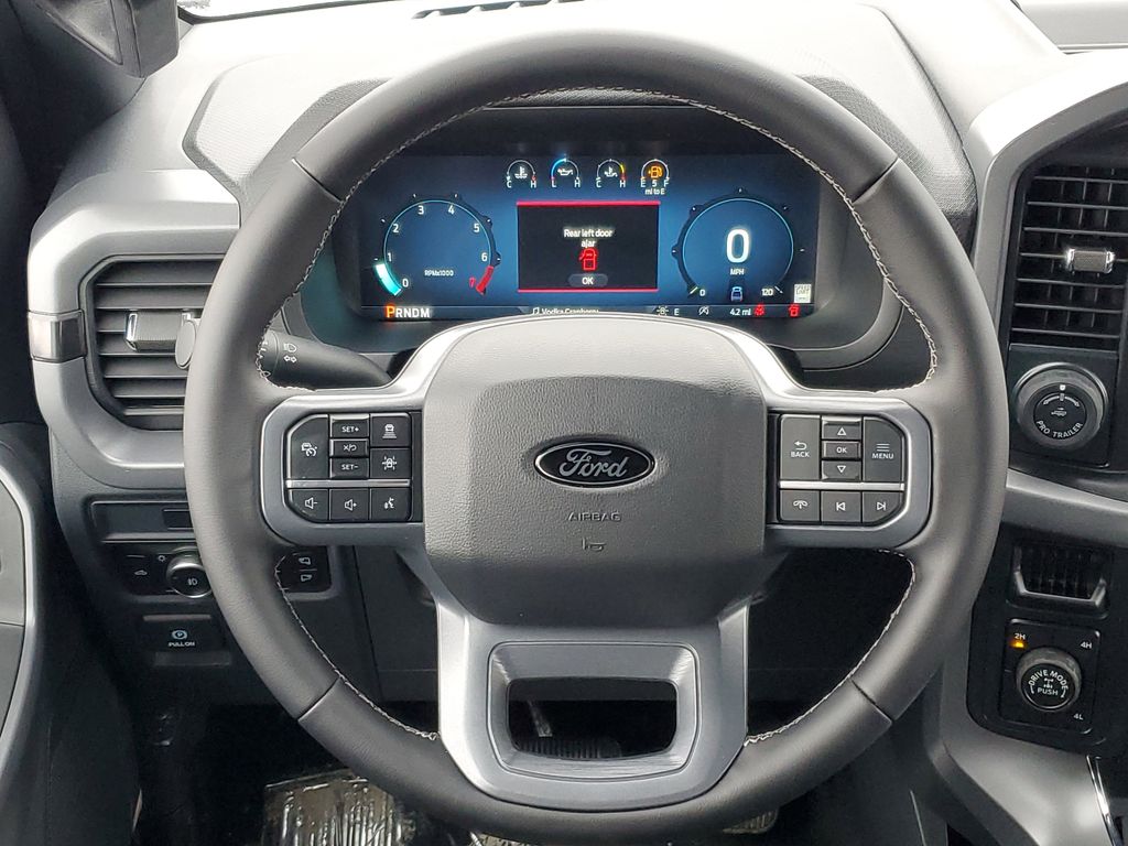 This Vehicles features Equipment Group 302A Mid (18'' Painted Aluminum Wheels, 360 Degree Camera, 400W Pro Power Onboard (cab & Bed), Adaptive Cruise Control with Stop and Go, Auto-Dimming Rear-View Mirror, Body-Color Door Handles, Cloth 40/20/40 Front Seat, Dual-Zone Electronic Automatic Temperature Control, Ford Co-Pilot360 Assist 2.0, Front Parking Sensors, Heated Front Seats, Intelligent Access with Push Button Start, Power Glass Heated Sideview Mirrors, Power-Sliding Rear Window, Radio: AM/FM Stereo with SiriusXM 360L, Remote Start System with Remote Tailgate Release, SYNC 4 with Enhanced Voice Recognition, Towing Technology, and Wrapped Steering Wheel), Ford Connectivity Package (1-Year Included), GVWR: 6,650 lbs Payload Package, Internet access capable: 5G Modem - Ford Connectivity Package, Mobile Office Package (Console Worksurface and Partitioned Lockable Rear Storage), XLT Black Appearance Package Plus (6'' Black Running Boards, Black Exterior Badging, Black Grille, Body-Color Front and Rear Bumpers, Dark Interior Appliques, Dual Exhaust with Black Tips, Gray Box Side Decal, and Wheels: 20'' Gloss Black Painted Aluminum), 4WD, 4-Wheel Disc Brakes, 6 Speakers, ABS brakes, Air Conditioning, Alloy wheels, AM/FM radio: SiriusXM with 360L, Auto High-beam Headlights, Black Platform Running Boards, Brake assist, Bumpers: body-color, Cloth 40/Console/40 Front Seats, Compass, Delay-off headlights, Driver door bin, Driver vanity mirror, Dual front impact airbags, Dual front side impact airbags, Electronic Stability Control, Emergency communication system: SYNC 4 911 Assist, Front anti-roll bar, Front Center Armrest, Front fog lights, Front reading lights, Front wheel independent suspension, Fully automatic headlights, Heated door mirrors, Illuminated entry, Low tire pressure warning, Occupant sensing airbag, Outside temperature display, Overhead airbag, Overhead console, Panic alarm, Passenger door bin, Passenger vanity mirror, Power door mirrors, Power steering, Power windows, Radio data system, Rear Parking Sensors, Rear reading lights, Rear step bumper, Rear window defroster, Remote keyless entry, Security system, Speed control, Split folding rear seat, Steering wheel mounted audio controls, Tachometer, Telescoping steering wheel, Tilt steering wheel, Traction control, Trip computer, and Variably intermittent wipers.