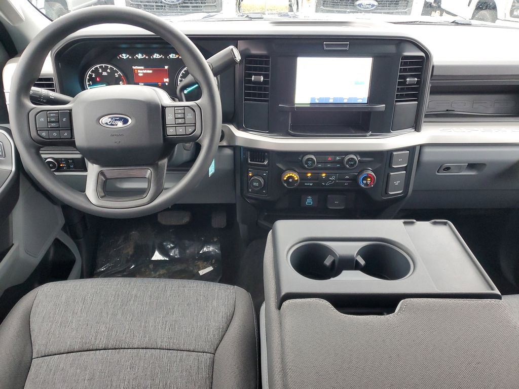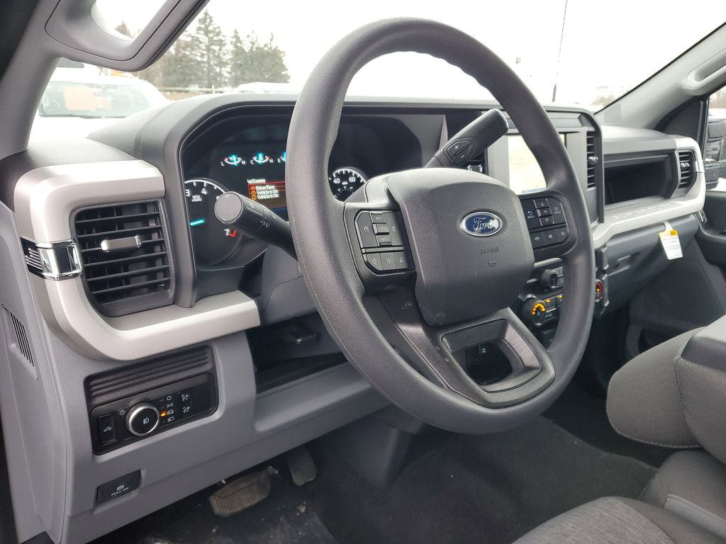 This Vehicles features 5th Wheel/Gooseneck Hitch Prep Package, Ford Connectivity Package (1-Year Included), GVWR: 10,000 lb Payload Package, Internet access capable: 5G Modem - Ford Connectivity Package, Order Code 600A, Snow Plow Prep Package, STX Appearance Package (Body-Color Front Bumper, Body-Color Rear Bumper, Cloth 40/20/40 Split Bench Seat, Color-Coordinated Full Carpet w/Floor Mats, LED Fog Lamps, Painted Grille, and Wheels: 18'' Ebony Black Painted Aluminum), XL Driver Assist Package, 4WD, 17'' Argent Painted Steel Wheels, 4-Wheel Disc Brakes, 6 Speakers, ABS brakes, Air Conditioning, AM/FM radio, AM/FM Stereo w/MP3 Player, Brake assist, Compass, Delay-off headlights, Dual AGM 68 AH Battery, Dual front impact airbags, Dual front side impact airbags, Electronic Stability Control, Emergency communication system: SYNC 4 911 Assist, Exterior Parking Camera Rear, Front anti-roll bar, Front Center Armrest w/Storage, Front reading lights, Fully automatic headlights, HD Vinyl 40/20/40 Split Bench Seat, Heated door mirrors, Illuminated entry, LED Roof Clearance Lights, Low tire pressure warning, Outside temperature display, Overhead airbag, Overhead console, Panic alarm, Passenger vanity mirror, Platform Running Boards, Power door mirrors, Power steering, Power windows, Power-Sliding Rear-Window w/Defrost, Privacy Glass, Pro Power Onboard - 2kW, Rear reading lights, Rear step bumper, Remote keyless entry, Security system, Speed control, Split folding rear seat, Steering wheel mounted audio controls, SYNC 4, Tachometer, Telescoping steering wheel, Tilt steering wheel, Traction control, Trip computer, Turn signal indicator mirrors, Upfitter Switches (6), and Variably intermittent wipers.