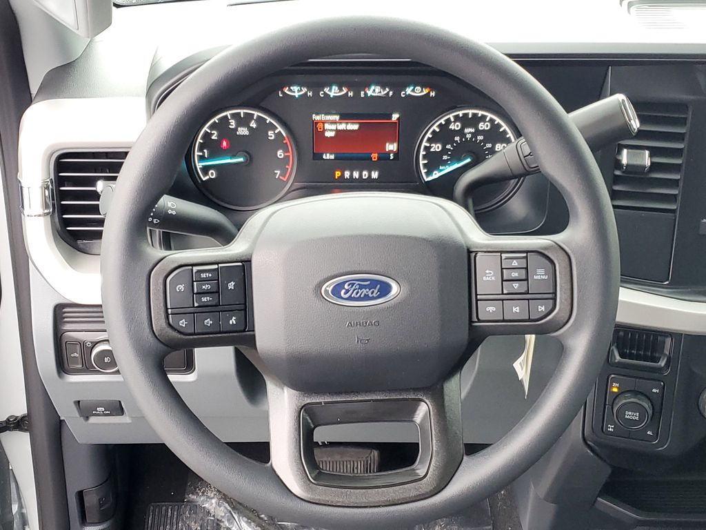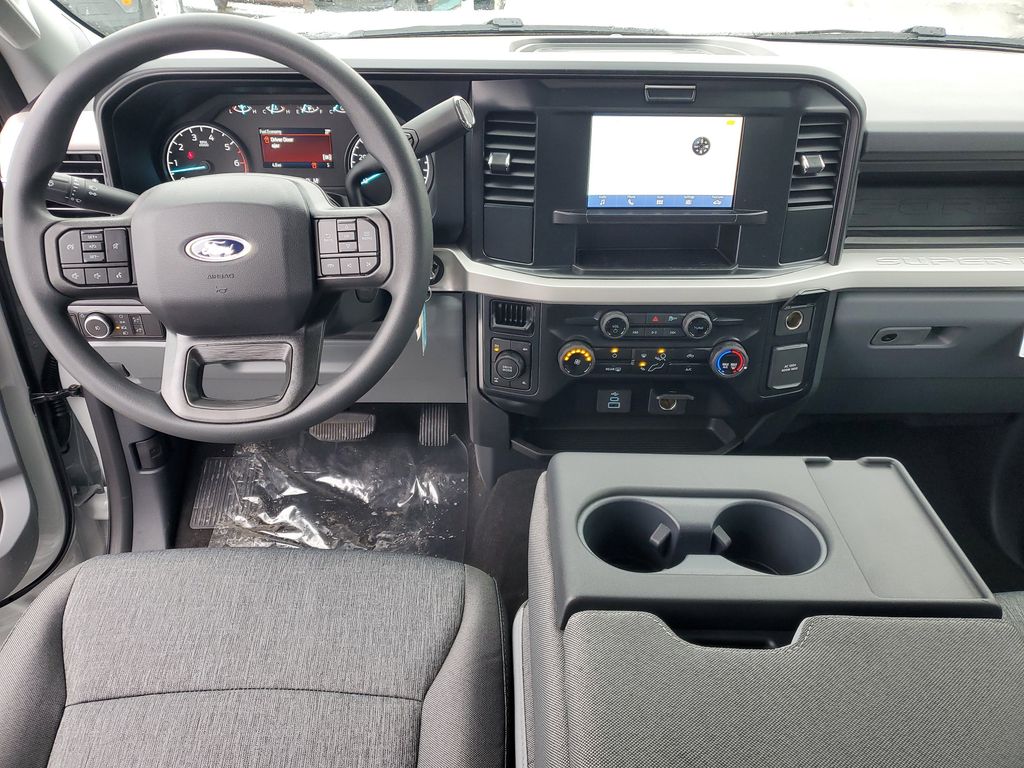 This Vehicles features 5th Wheel/Gooseneck Hitch Prep Package, F-250 >10K GVWR Package, Ford Connectivity Package (1-Year Included), GVWR: 10,000 lb Payload Package, Internet access capable: 5G Modem - Ford Connectivity Package, Order Code 600A, Snow Plow Prep Package, STX Appearance Package (Body-Color Front Bumper, Body-Color Rear Bumper, Cloth 40/20/40 Split Bench Seat, Color-Coordinated Full Carpet w/Floor Mats, LED Fog Lamps, Painted Grille, and Wheels: 18'' Ebony Black Painted Aluminum), XL Driver Assist Package, 4WD, 17'' Argent Painted Steel Wheels, 4-Wheel Disc Brakes, 400W Pro Power Onboard, 410 Amp Dual Alternators, 6 Speakers, ABS brakes, Air Conditioning, AM/FM radio, AM/FM Stereo w/MP3 Player, Brake assist, Compass, Delay-off headlights, Dual AGM 68 AH Battery, Dual front impact airbags, Dual front side impact airbags, Electronic Stability Control, Emergency communication system: SYNC 4 911 Assist, Exterior Parking Camera Rear, Front anti-roll bar, Front Center Armrest w/Storage, Front reading lights, Fully automatic headlights, HD Vinyl 40/20/40 Split Bench Seat, Heated door mirrors, Illuminated entry, Low tire pressure warning, Outside temperature display, Overhead airbag, Overhead console, Panic alarm, Passenger cancellable airbag, Passenger vanity mirror, Platform Running Boards, Power door mirrors, Power steering, Power windows, Power-Sliding Rear-Window w/Defrost, Privacy Glass, Rear step bumper, Remote keyless entry, Security system, Speed control, Split folding rear seat, Steering wheel mounted audio controls, SYNC 4, Tachometer, Telescoping steering wheel, Tilt steering wheel, Traction control, Trip computer, Turn signal indicator mirrors, Upfitter Switches (6), and Variably intermittent wipers.