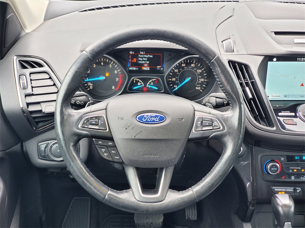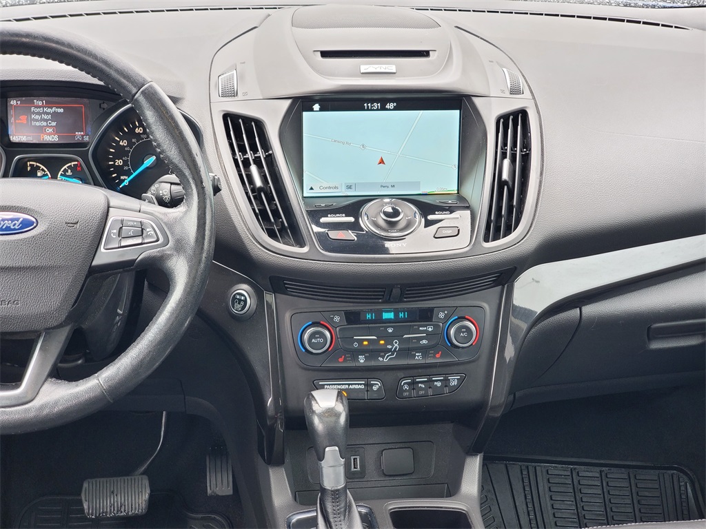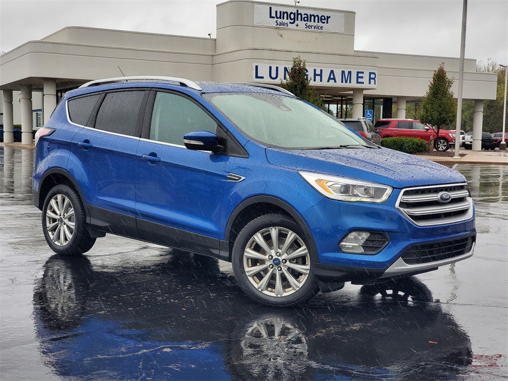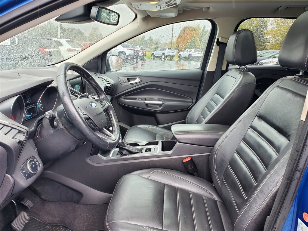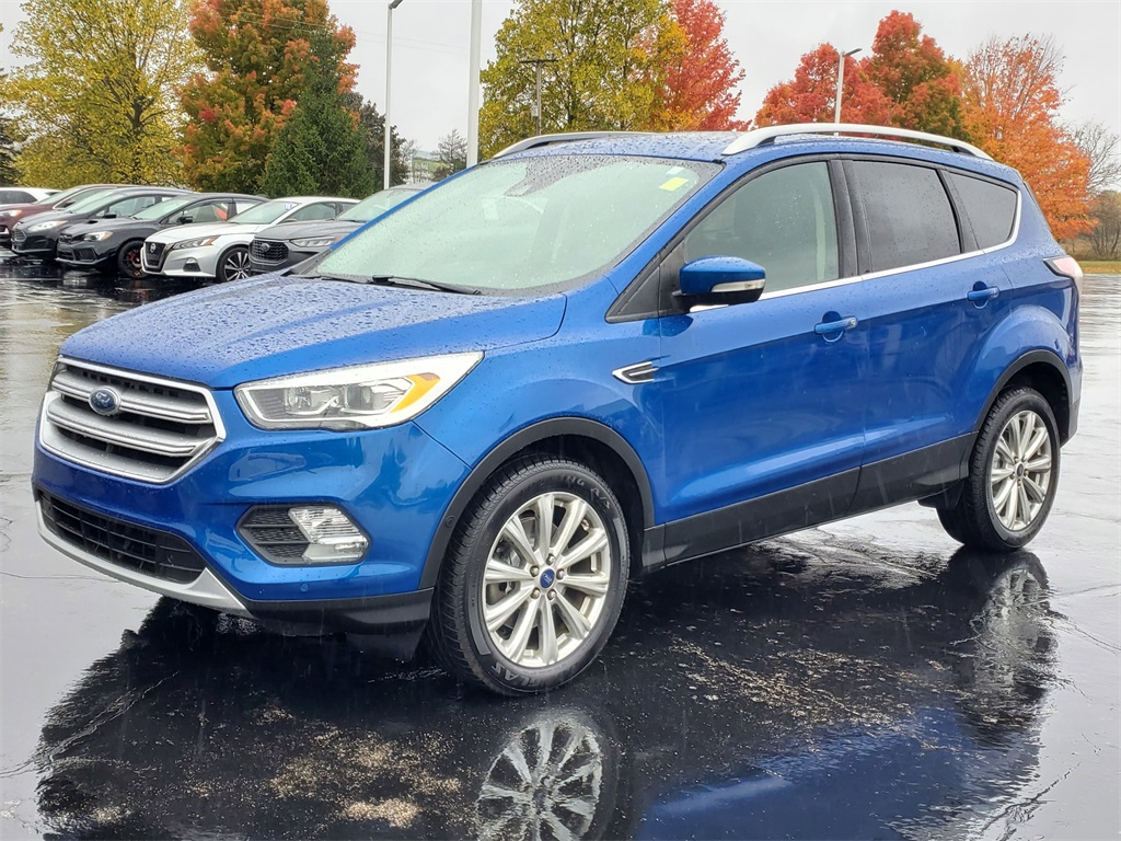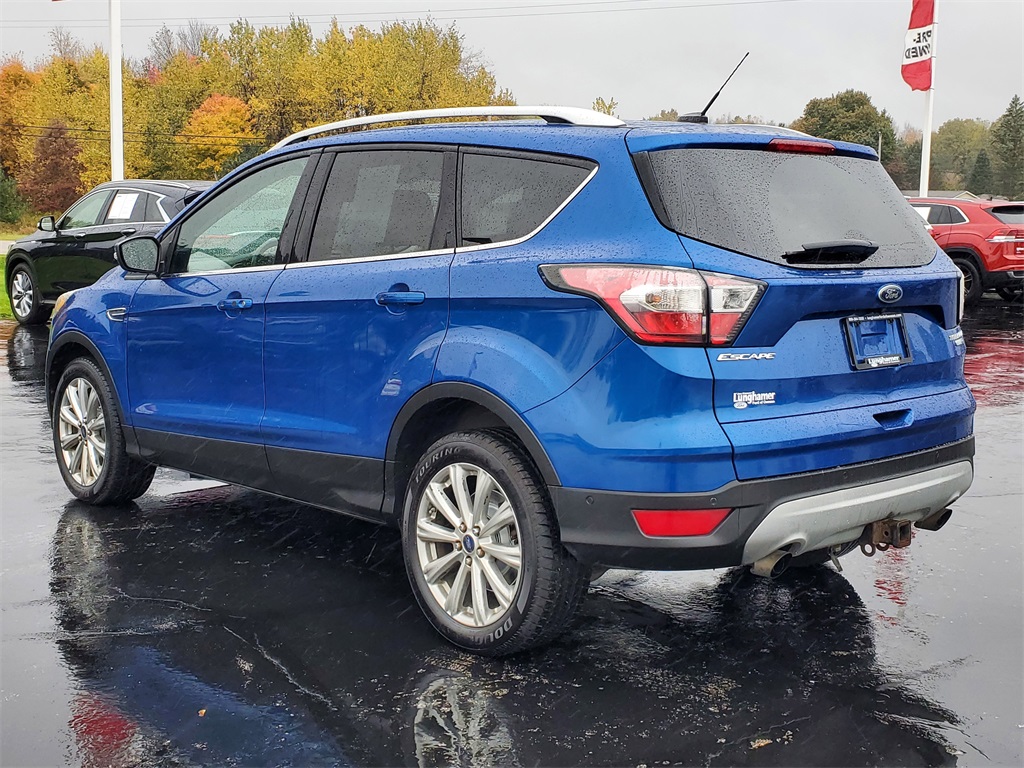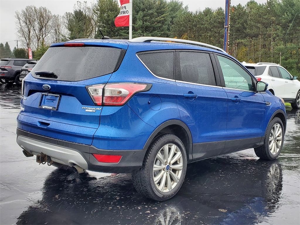 Lightning Blue Metallic 2017 Ford Escape Titanium 4WD 6-Speed Automatic EcoBoost 2.0L I4 GTDi DOHC Turbocharged VCT  *AWD*, *ACCIDENT FREE HISTORY*, *LOCAL TRADE*, *BLUETOOTH*, *NAVIGATION*, *POWER SUNROOF*, *LEATHER*, *HEATED SEATS*, *USB/AUX STEREO*, *TOWING PACKAGE*, *REMOTE START*, *BACK UP CAMERA*, BLIND SPOT MIRRORS, 3500 LBS TOWING, SIRIUSXM, SONY PREMIUM AUDIO, HEATED STEERING WHEEL,  Charcoal Black w/Heated Leather-Trimmed Buckets w/60/40 Rear Seat, Auto High Beams, Bi-Xenon High-Intensity Discharge Headlamps, Enhanced Active Park Assist System, Heated Steering Wheel, Lane-Keeping System, Rain-Sensing Wipers, Titanium Technology Package.