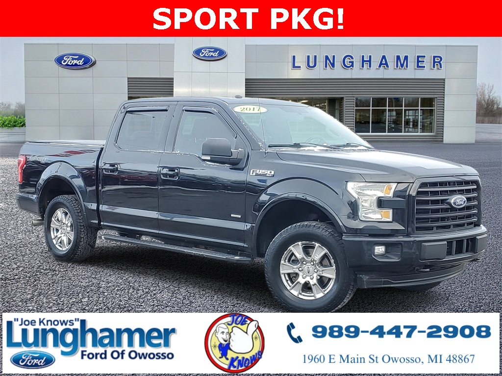 Shadow Black 2017 Ford F-150 XLT 4WD 6-Speed Automatic Electronic 2.7L V6 EcoBoost *4X4*, *NAVIGATION*, *TOWING PACKAGE*, *REMOTE START*, *BACK UP CAMERA*, F-150 XLT, 4D SuperCrew, 2.7L V6 EcoBoost, 6-Speed Automatic Electronic, 4WD, Shadow Black, Black w/Unique Sport Cloth 40/Console/40 Front-Seats, 10-Way Power Driver's & Passenger Seats, 110V/400W Outlet, 4.2'' Productivity Screen in Instrument Cluster, ABS brakes, Accent-Color Step Bars, Black Billet Style Grille w/Body-Color Surround, Body-Color Door & Tailgate Handles, Body-Color Front & Rear Bumpers, Box Side Decal, BoxLink, Class IV Trailer Hitch Receiver, Compass, Electronic Locking w/3.55 Axle Ratio, Electronic Stability Control, Equipment Group 302A Luxury, Front fog lights, Fully automatic headlights, GVWR: 6,500 lbs Payload Package, Heated Front Seats, Illuminated entry, Leather-Wrapped Steering Wheel, LED Box Lighting, Low tire pressure warning, Power Glass Heated Sideview Mirrors, Power-Adjustable Pedals, Power-Sliding Rear Window, Pro Trailer Backup Assist, Radio: Single-CD w/SiriusXM Satellite, Rear Under-Seat Storage, Rear View Camera w/Dynamic Hitch Assist, Remote keyless entry, Remote Start System, Reverse Sensing System, Single-Tip Chrome Exhaust, Speed control, SYNC 3, Tilt steering wheel, Traction control, Trailer Tow Package, Unique Sport Cloth 40/Console/40 Front-Seats, Upgraded Front Stabilizer Bar, Wheels: 18'' 6-Spoke Machined-Aluminum, XLT Chrome Appearance Package, XLT Sport Appearance Package.
