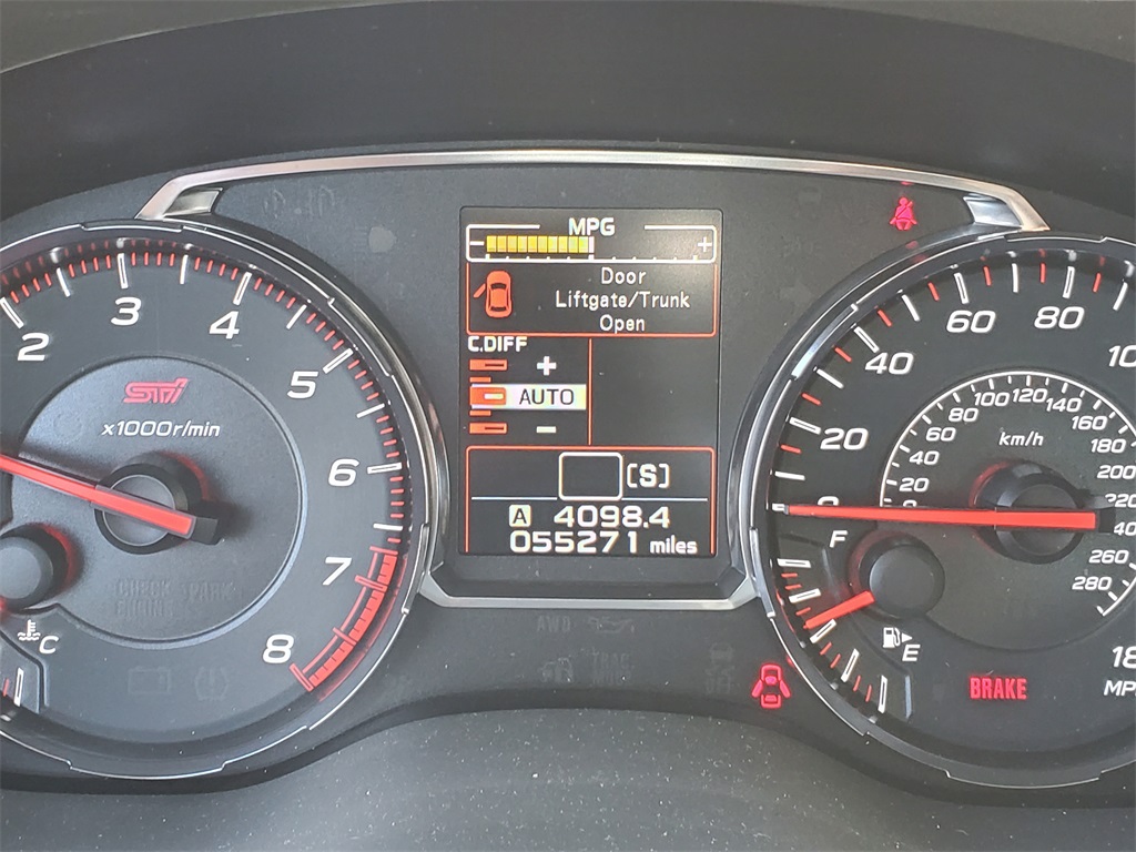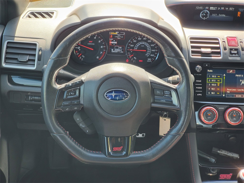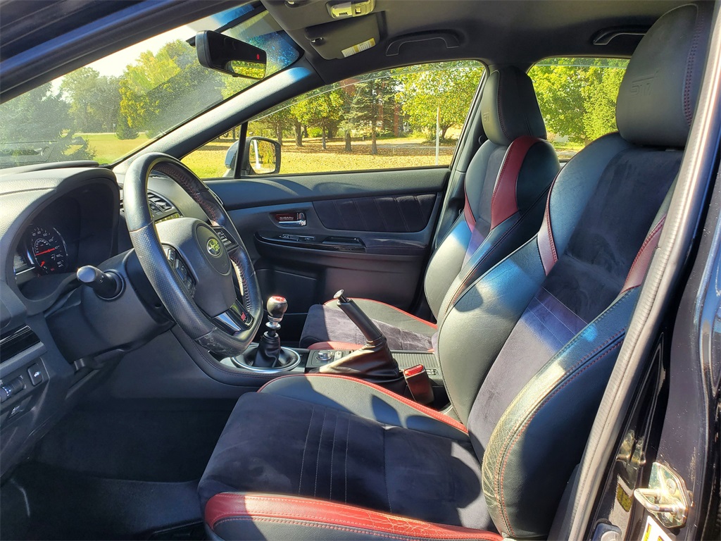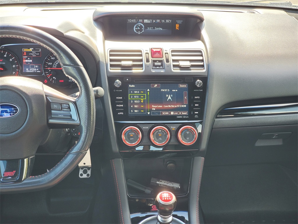 Crystal Black Silica 2018 Subaru WRX STi AWD Close-Ratio 6-Speed Manual 2.5L DOHC Intercooled High Boost Turbocharged  *AWD*, *LOCAL TRADE*, *BLUETOOTH*, *HEATED SEATS*, *BACK UP CAMERA*, Carbon Black w/Checkered Cloth Upholstery, 4-Wheel Disc Brakes, AM/FM radio: SiriusXM, Automatic temperature control, Brake assist, Electronic Stability Control, Four wheel independent suspension, Front anti-roll bar, Heated door mirrors, Leather Shift Knob, Leather steering wheel, Performance Design Heated Front Bucket Seats, Radio: Subaru Starlink 7.0'' Multimedia Plus System, Speed-sensing steering, Spoiler, Sport steering wheel, Steering wheel mounted audio controls, Traction control.