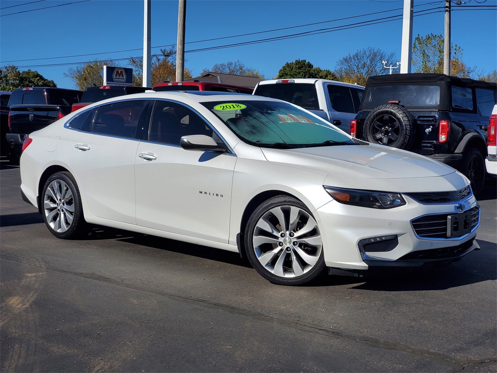 Summit White 2018 Chevrolet Malibu Premier FWD 9-Speed Automatic 2.0L 4-Cylinder DGI DOHC VVT Turbocharged 2018 Chevrolet Malibu, *LOCAL TRADE*, *NAVIGATION*, *POWER SUNROOF*, *LEATHER*, *HEATED SEATS*, *REMOTE START*, *BACK UP CAMERA*, Malibu Premier, 4D Sedan, 2.0L 4-Cylinder DGI DOHC VVT Turbocharged, 9-Speed Automatic, FWD, Summit White, Dark Atmosphere/Medium Ash Gray w/Leather-Appointed Seat Trim, 19'' Aluminum Wheels, 6-Way Power Front Passenger Seat Adjuster, 8-Way Power Driver Seat Adjuster, Air Conditioning, AM/FM radio: SiriusXM, Apple CarPlay/Android Auto, Automatic temperature control, Bose Premium 9-Speaker System, Driver Confidence Package, Driver Memory, Dual USB Charging-Only Ports, Exterior Parking Camera Rear, Following Distance Indicator, Forward Collision Alert, Front & Rear Park Assist, Front & Rear Premium Floor Mats, Front dual zone A/C, Front Passenger Power Lumbar Seat Adjuster, Front Pedestrian Braking, Fully automatic headlights, Heated Driver & Front Passenger Seats, Heated steering wheel, IntelliBeam Automatic High-Beam Headlamps, Lane Keep Assist, Low-Speed Forward Automatic Braking, Memory seat, Navigation System, Perforated Leather-Appointed Seat Trim, Power Driver Lumbar Control Seat Adjuster, Power passenger seat, Power Tilt-Sliding Sunroof, Power windows, Preferred Equipment Group 2LZ, Premier Sun and Wheel Package, Radio data system, Radio: Chevrolet MyLink AM/FM Stereo w/Navigation, Rear Cross-Traffic Alert, Rear window defroster, Side Blind Zone Alert w/Lane Change Alert, SiriusXM Satellite Radio, Speed control, Tilt steering wheel.
