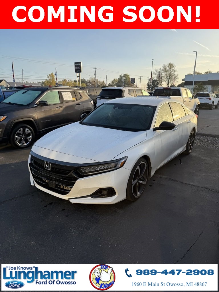 Platinum White Pearl 2022 Honda Accord Sport FWD CVT 1.5T I4 DOHC 16V Turbocharged VTEC 2022 Honda Accord, *LOCAL TRADE*, Accord Sport, 4D Sedan, 1.5T I4 DOHC 16V Turbocharged VTEC, CVT, FWD, Platinum White Pearl, Black w/Fabric w/Synthetic Leather Seat Trim, Wheels: 19'' Machine-Finished Alloy w/Black Inserts.