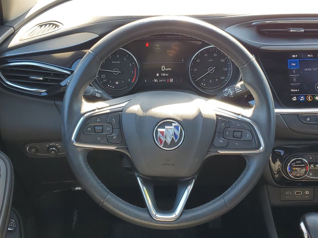 Step inside and you'll be surrounded by premium amenities, including the Buick Infotainment System with an 8'' diagonal touchscreen, wireless Apple CarPlay and Android Auto, and a premium 6-speaker audio system. The leather-appointed seating, heated front seats, and heated steering wheel add a touch of luxury, while the power driver's seat and memory settings ensure you can find your perfect driving position.