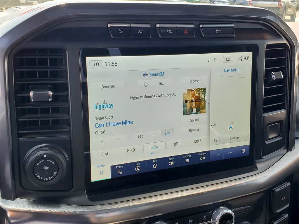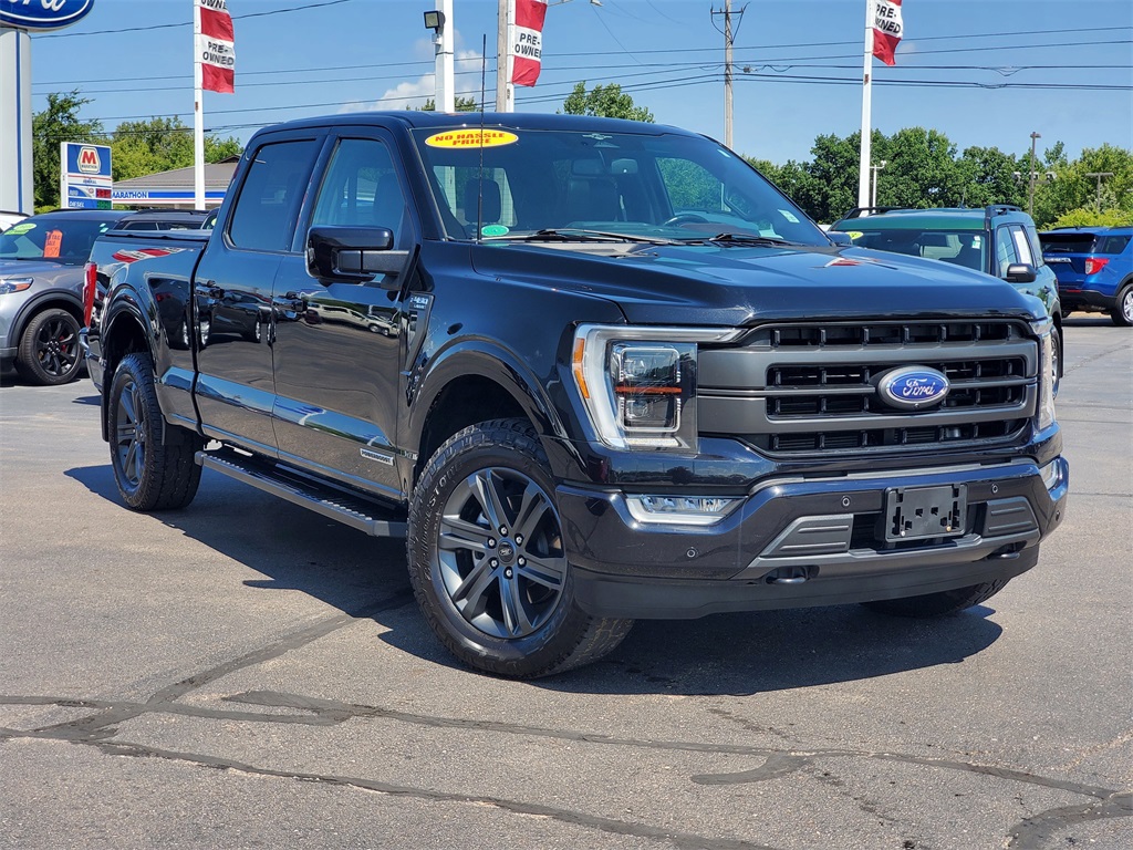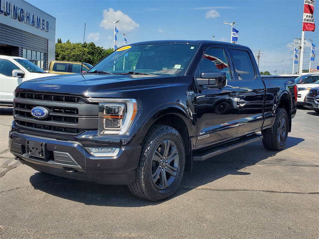 Agate Black Metallic 2023 Ford F-150 Lariat 4WD 10-Speed Automatic 3.5L PowerBoost Full-Hybrid V6 2023 Ford F-150, *4X4*, *ONE OWNER*, *NAVIGATION*, *LEATHER*, *HEATED SEATS*, *REMOTE START*, *BACK UP CAMERA*, MAX TOW PKG!, SPORT APPEARANCE PKG!, F-150 Lariat, 4D SuperCrew, 3.5L PowerBoost Full-Hybrid V6, 10-Speed Automatic, 4WD, Agate Black Metallic, Black w/Leather-Trimmed 40/Console/40 Front Seat, 2nd Row Heated Seats, 360 Degree Camera, 8 Speakers, ABS brakes, Accent-Color Angular Step Bars, Adjustable pedals, Air Conditioning, Auto High-beam Headlights, Automatic temperature control, Body-Color Front & Rear Bumpers, Box Side Decals, Chrome Single-Tip Exhaust, Class IV Trailer Hitch Receiver, Compass, Connected Built-In Navigation, Dark 2-Bar & 1 Minor Bar Style Grille, Electronic Locking w/3.73 Axle Ratio, Electronic Stability Control, Equipment Group 502A High, Extended Range 36 Gallon Fuel Tank, Exterior Parking Camera Rear, Ford Co-Pilot360 Assist 2.0, Front dual zone A/C, Front fog lights, Fully automatic headlights, Heated door mirrors, Heated front seats, Heated steering wheel, Illuminated entry, Integrated Trailer Brake Controller, Lariat Sport Appearance Package, Leather-Trimmed Bucket Seats, LED Projector w/Dynamic Bending Headlamps, Low tire pressure warning, Max Trailer Tow Package, Memory seat, Navigation system: Connected Navigation, Pedal memory, Power driver seat, Power passenger seat, Power Tilt/Telescoping Steering Column w/Memory, Power windows, Pro Trailer Backup Assist & Pro Trailer Hitch Assist, Radio data system, Radio: B&O Sound System by Bang & Olufsen, Rain-Sensing Wipers, Rear window defroster, Remote keyless entry, Speed control, Split folding rear seat, SYNC 4 w/Enhanced Voice Recognition, Tilt steering wheel, Traction control, Twin Panel Moonroof, Ventilated front seats, Wheels: 20'' Chrome-Like PVD, Wireless Charging Pad.