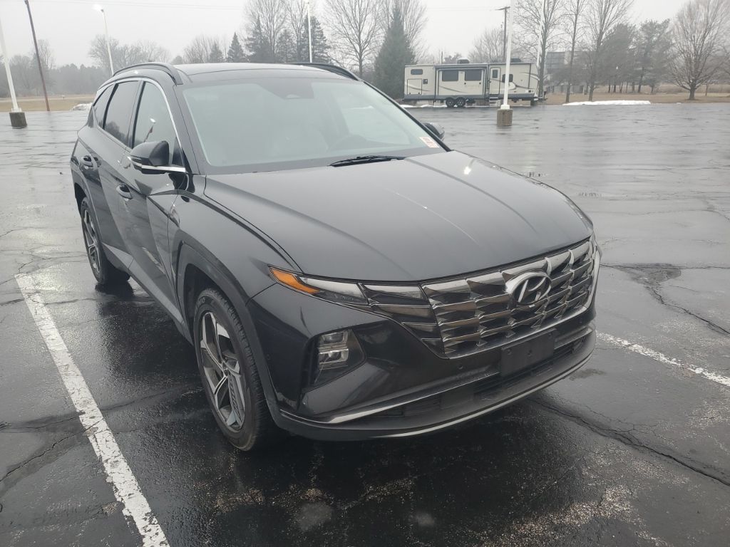 Phantom Black 2023 Hyundai Tucson Limited AWD 8-Speed Automatic with SHIFTRONIC 2.5L I4 DGI DOHC 16V LEV3-ULEV70 187hp *AWD*, *ONE OWNER*, *BLUETOOTH*, *NAVIGATION*, *POWER SUNROOF*, *LEATHER*, *HEATED SEATS*, *COOLED SEATS*, *USB/AUX STEREO*, *REMOTE START*, *BACK UP CAMERA*, Lane Keeping Assist, Blind-Spot Collision-Avoidance Assist, Rear Cross-Traffic Collision-Avoidance Assist, Wireless Device Charging, Bose® Premium Audio System, SiriusXM®, Android Auto, Apple CarPlay, Gray w/Leather Seat Trim.