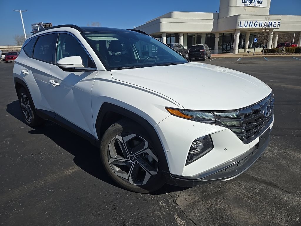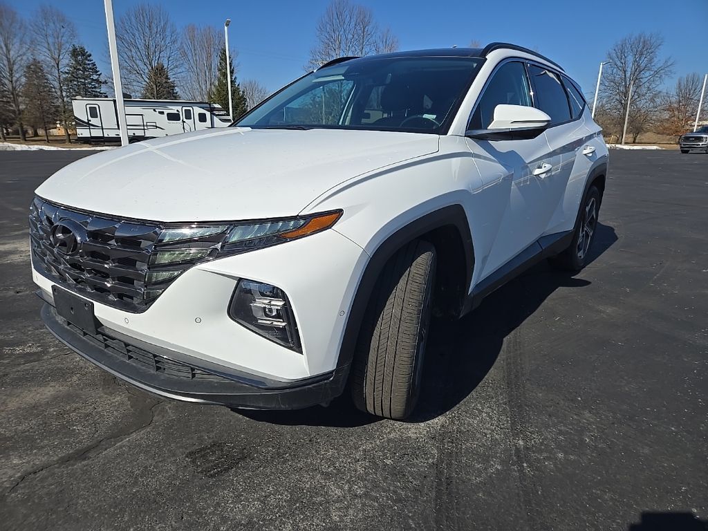 White Pearl 2024 Hyundai Tucson Limited FWD 8-Speed Automatic with SHIFTRONIC 2.5L I4 DGI DOHC 16V LEV3-SULEV30 187hp *ONE OWNER*, *BLUETOOTH*, *NAVIGATION*, *POWER SUNROOF*, *LEATHER*, *HEATED SEATS*, *COOLED SEATS*, *USB/AUX STEREO*, *REMOTE START*, *BACK UP CAMERA*, Lane Keeping Assist, Blind-Spot Collision-Avoidance Assist, Rear Cross-Traffic Collision-Avoidance Assist, Hands-free Smart Power Liftgate, Ambient Interior Lighting, Leather-wrapped Heated Steering Wheel, Smart Cruise Control, Rain-sensing Front Windshield Wipers, 10.25'' Digital Instrument Cluster, Front and Rear USB Ports, SiriusXM®, Bose® Premium Audio System, Android Auto, Apple CarPlay, Wireless Phone Charger, Black w/Leather Seat Trim.