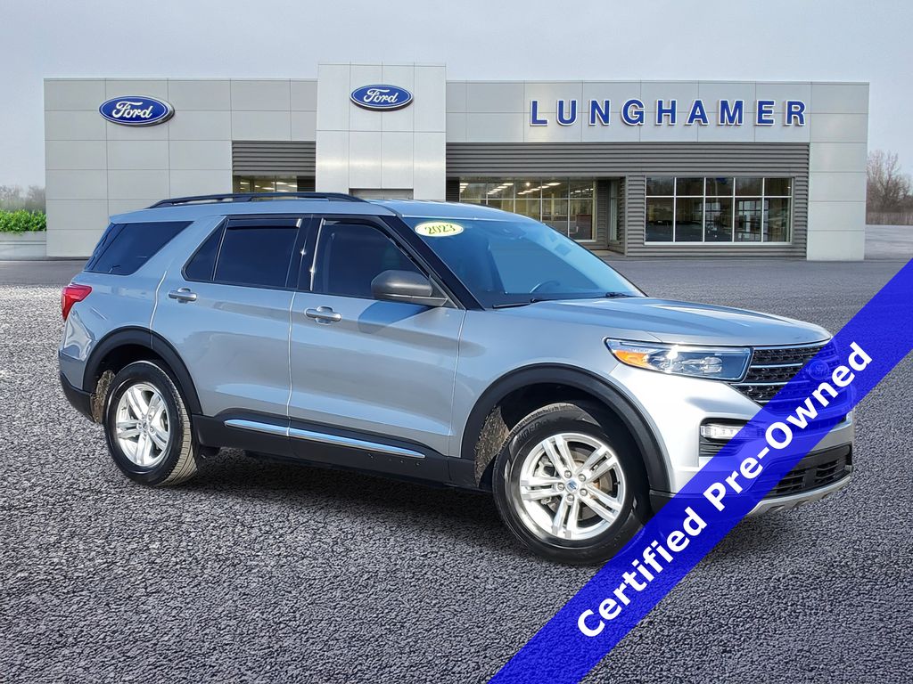 Certified. Iconic Silver Metallic 2023 Ford Explorer XLT 4WD 10-Speed Automatic 2.3L EcoBoost I-4 2023 Ford Explorer, *FORD CERTIFED!*, *4X4*, *ACCIDENT FREE HISTORY*, *ONE OWNER*, *HEATED SEATS*, *REMOTE START*, *BACK UP CAMERA*, 7 PASSENGER, POWER LIFTGATE, HEATED STEERING WHEEL, Explorer XLT, 4D Sport Utility, 2.3L EcoBoost I-4, 10-Speed Automatic, 4WD, Iconic Silver Metallic, Ebony w/Heated ActiveX Captain's Chairs, 2nd Row 35/30/35 Bench w/E-Z Entry & Armrest, 3rd row seats: bench, 6 Speakers, Acoustic-Laminated Front Side Windows, Air Conditioning, AM/FM radio: SiriusXM, AM/FM Stereo, Auto High-beam Headlights, Automatic temperature control, Delay-off headlights, Equipment Group 202A, Exterior Parking Camera Rear, FordPass Connect, Front dual zone A/C, Fully automatic headlights, Heated ActiveX Captain's Chairs, Heated Steering Wheel, LED Fog Lamps, Power driver seat, Power Liftgate, Power passenger seat, Power windows, Rear air conditioning, Rear Auxiliary Controls Credit, Rear window defroster, Remote Start System, SecuriCode Keyless Entry Keypad, Speed control, SYNC 3 Communications & Entertainment System, Tilt steering wheel, Wheels: 18'' 5-Spoke Silver-Painted Aluminum.